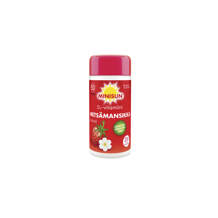 Minisun D-vitamiini Metsämansikka 50 mikrog 200 tabl