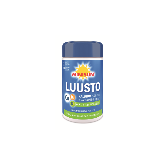 Minisun Luusto Kalsiun + K2 + D-vit. (500mg + 45mikrog + 25mikrog) 80 tabl